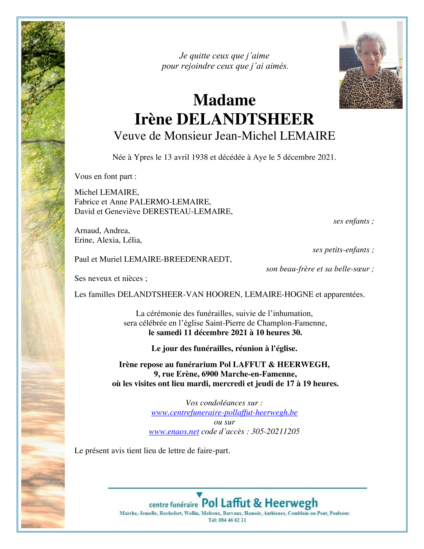 Veuve de Monsieur Jean-Michel LEMAIRE