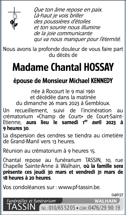 Madame Chantal KENNEDY geboren HOSSAY