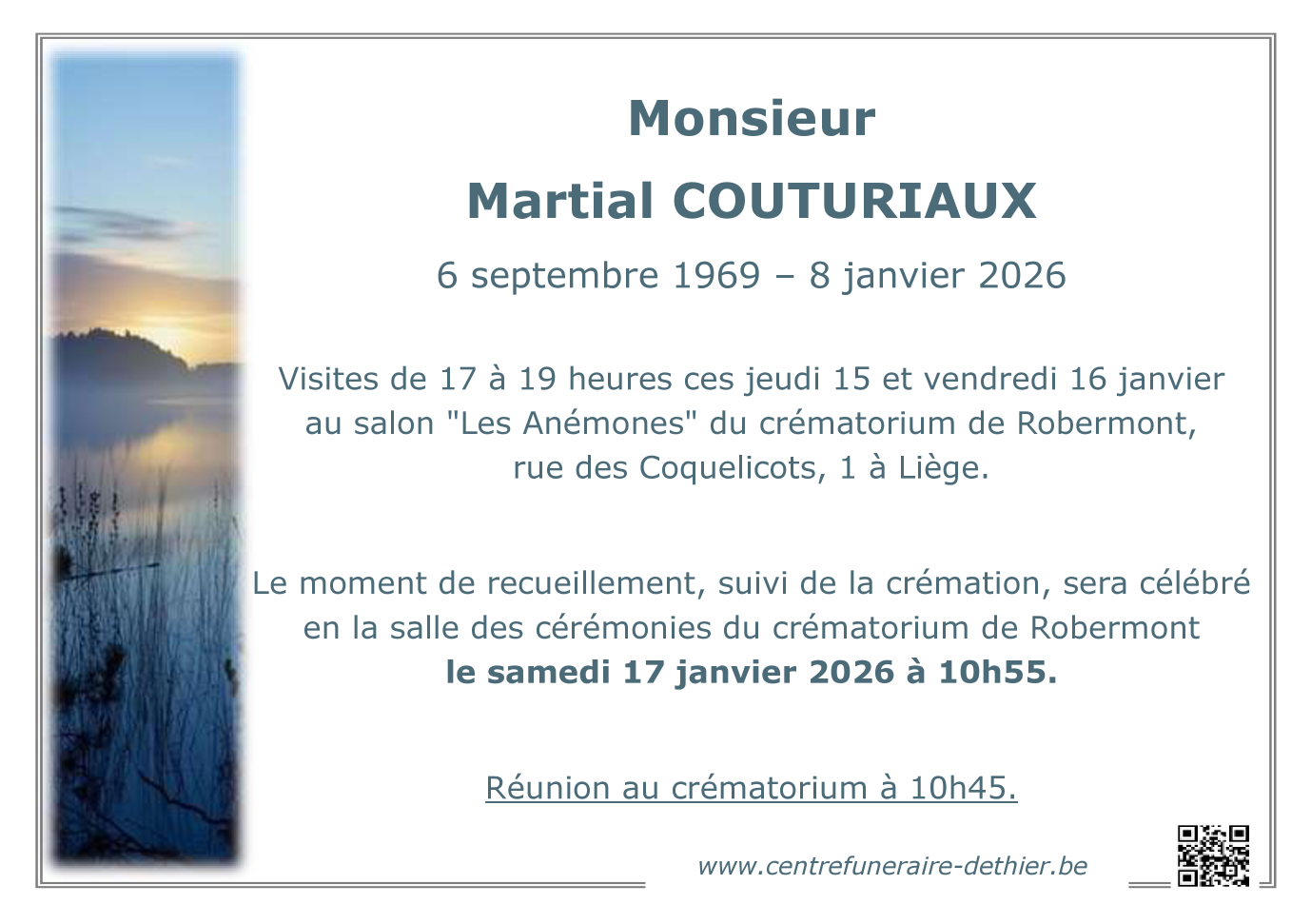 Décédé à Bressoux (4020) le jeudi 8 janvier 2026 à l'âge de 56 ans