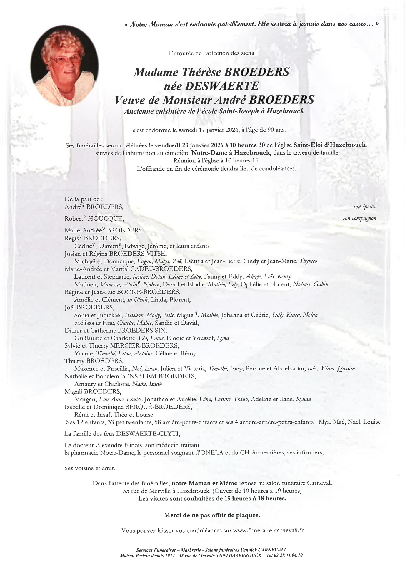 Died in Armentières (59280, France) on 17 January 2026 at the age of 90 years