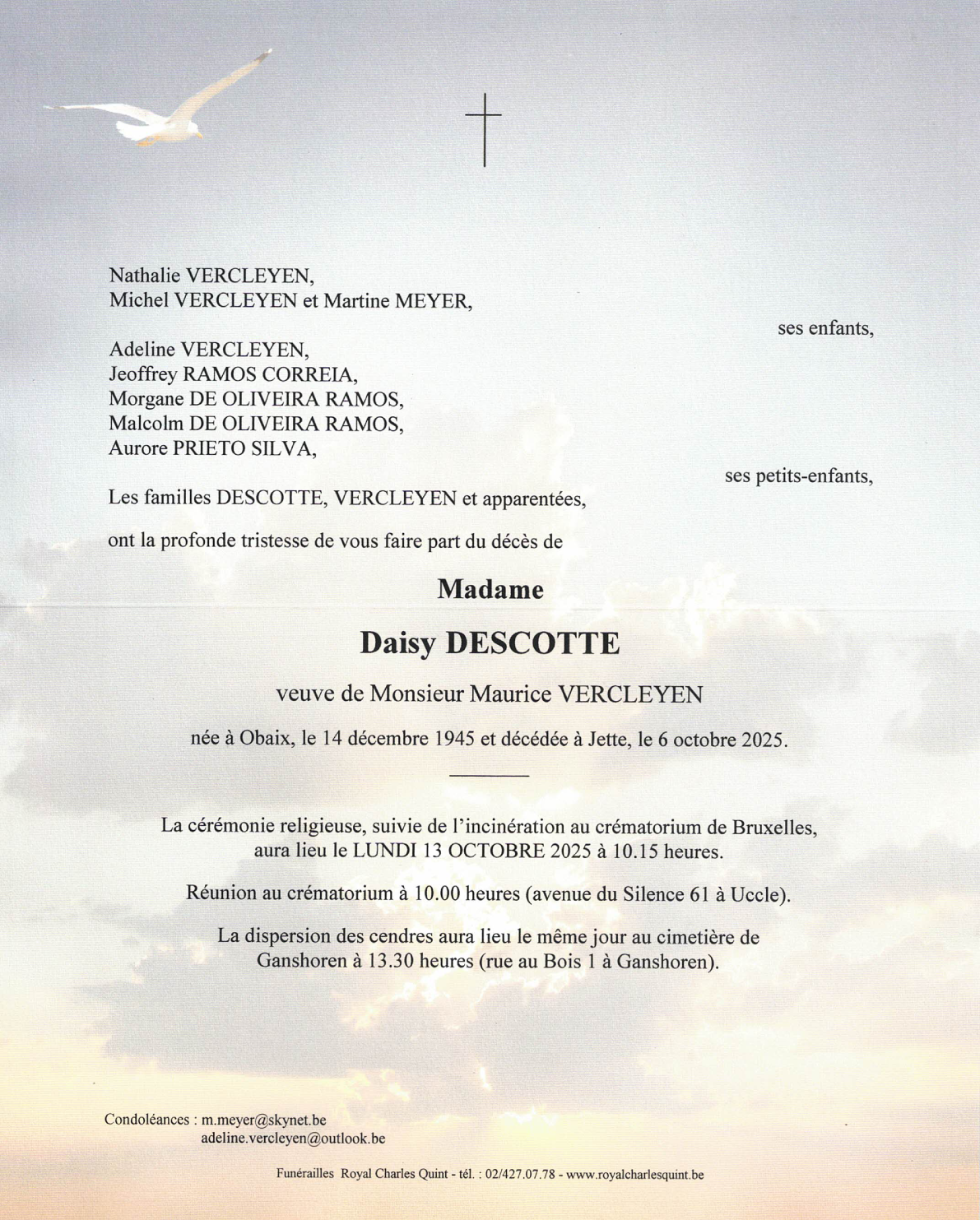 Décédée à Jette (1090) le lundi 6 octobre 2025 à l'âge de 79 ans
