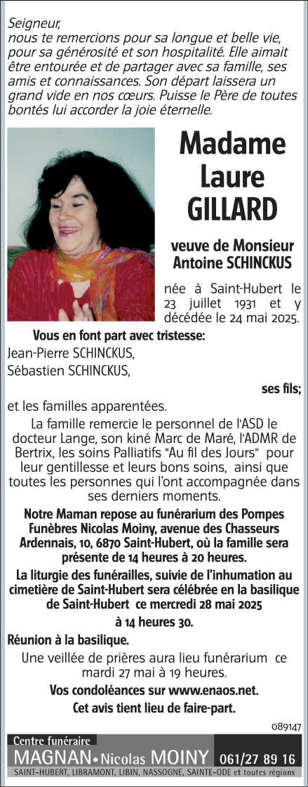 Died in Saint-Hubert (6870) on 24 May 2025 at the age of 93 years