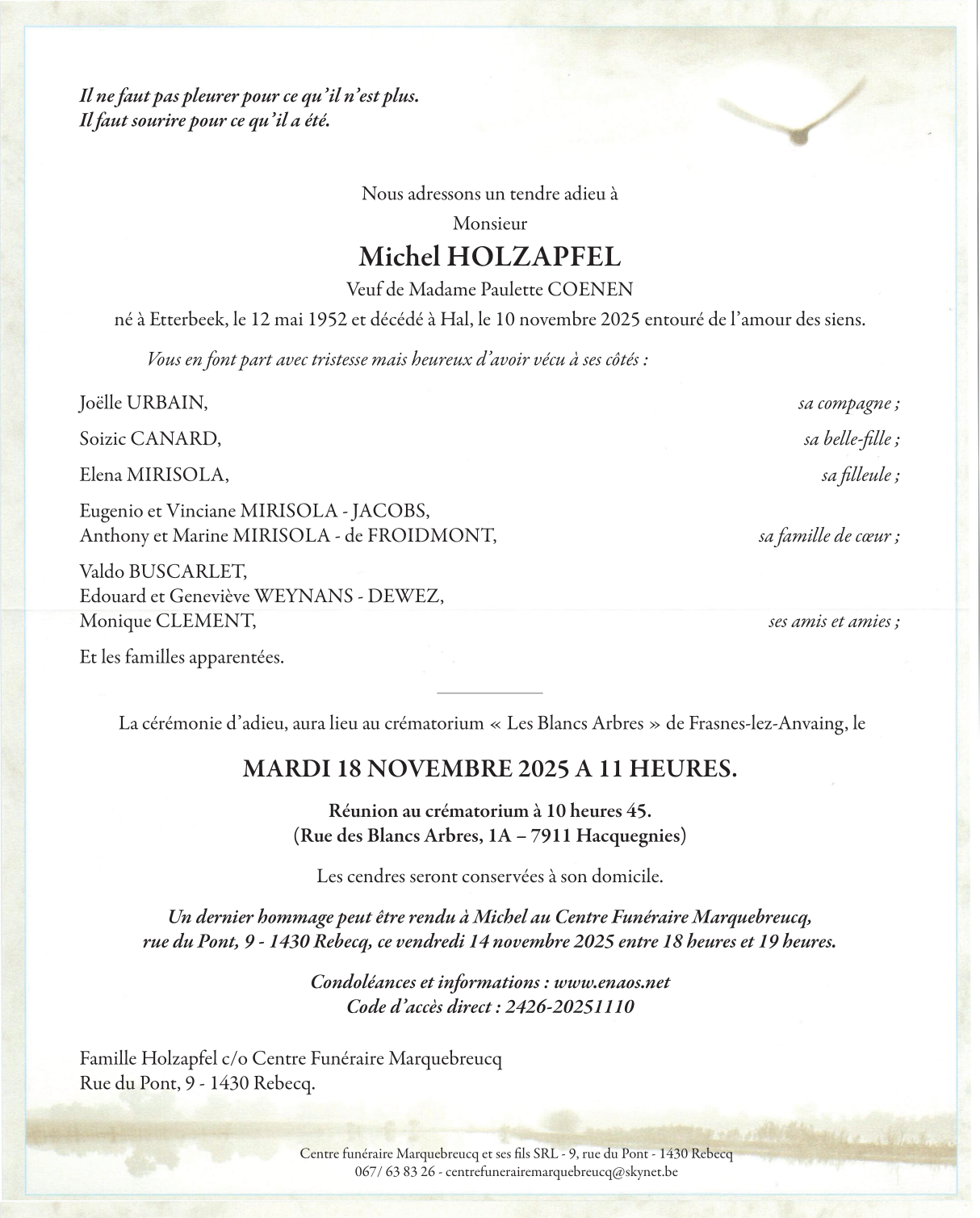 Décédé à Halle (1500) le lundi 10 novembre 2025 à l'âge de 73 ans