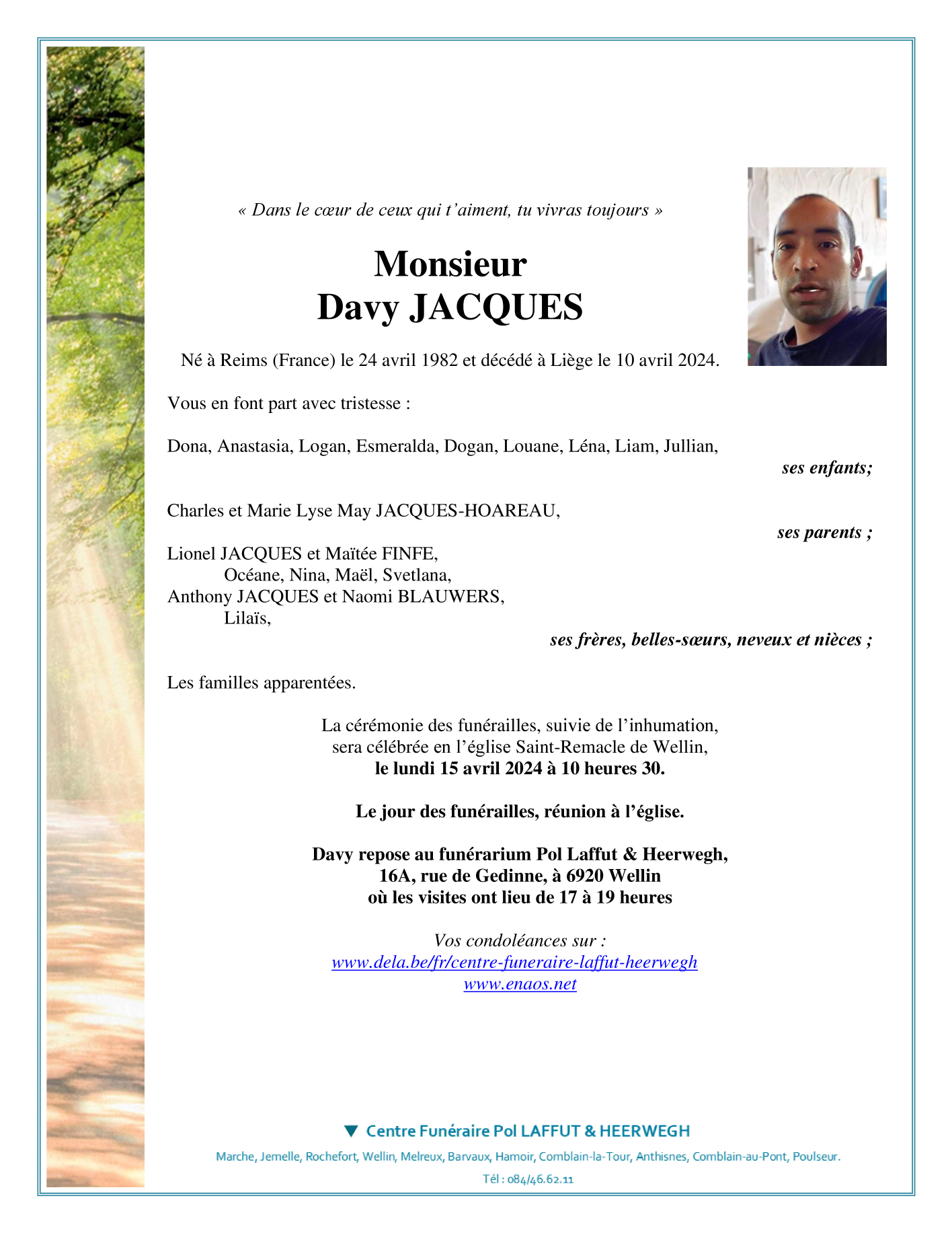 Died in Liège (4000) on 10 April 2024 at the age of 41 years