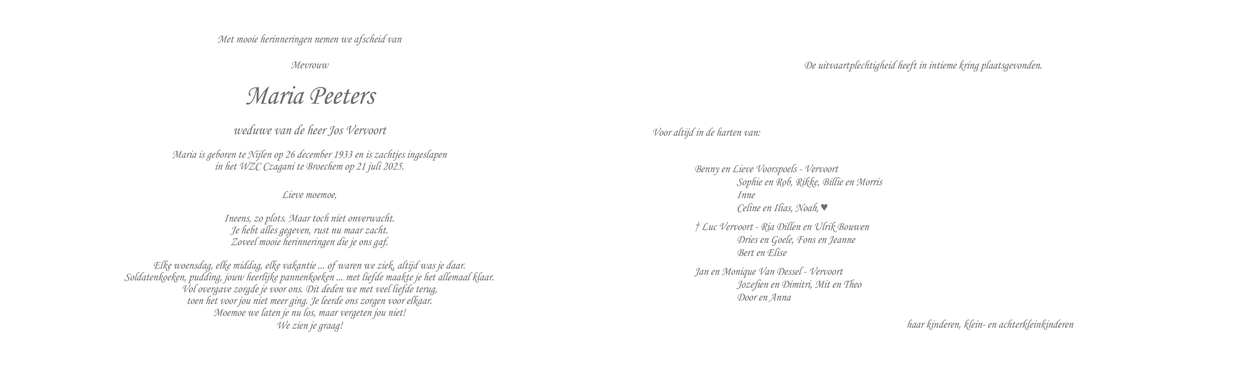 Widow of Mijnheer Jos Vervoort