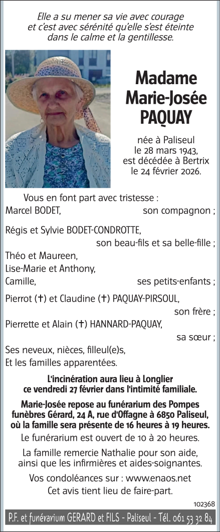 Madame Marie-Josée PAQUAY