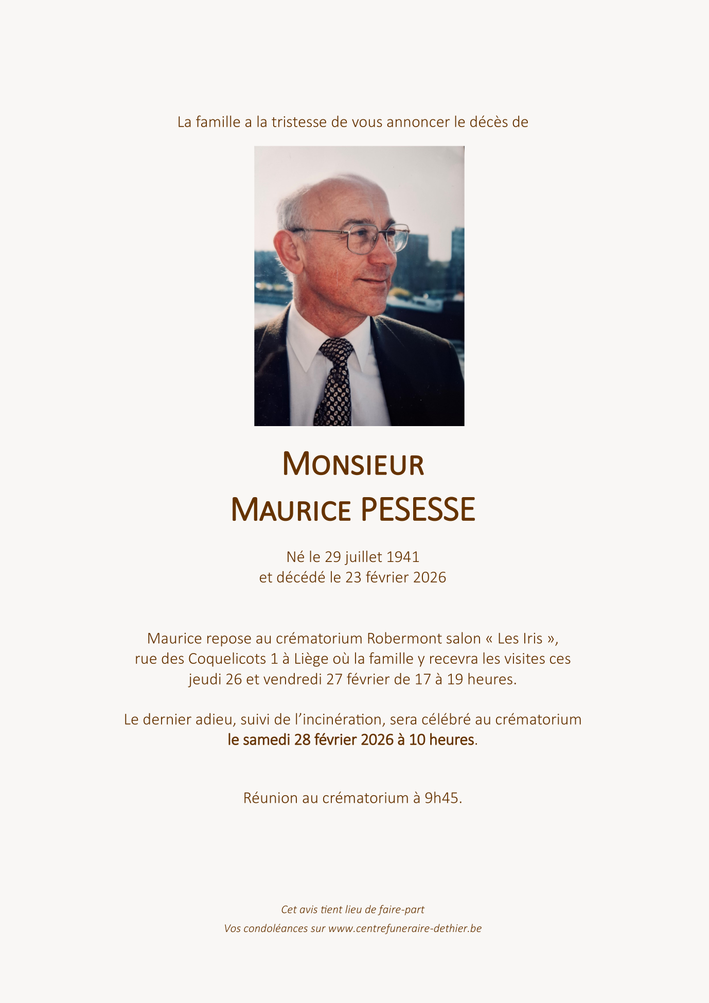 Décédé à Herstal (4040) le lundi 23 février 2026 à l'âge de 84 ans