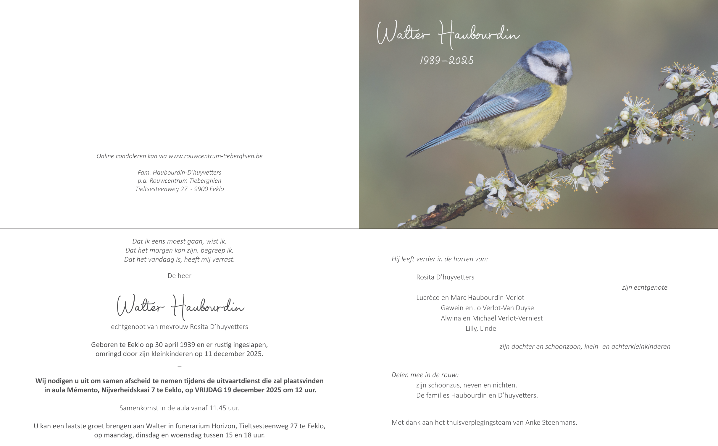 Décédé à Eeklo (9900) le jeudi 11 décembre 2025 à l'âge de 86 ans