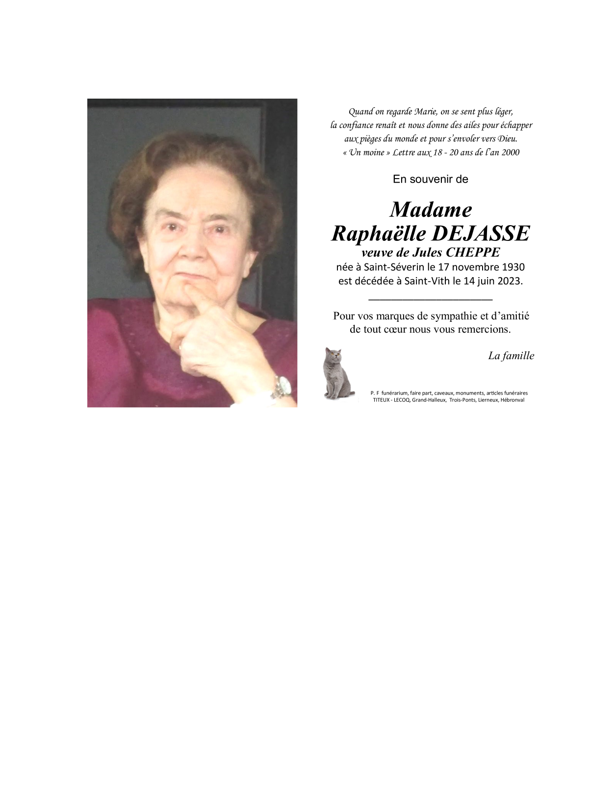 Décédée à Saint-Vith (4780) le mercredi 14 juin 2023 à l'âge de 92 ans