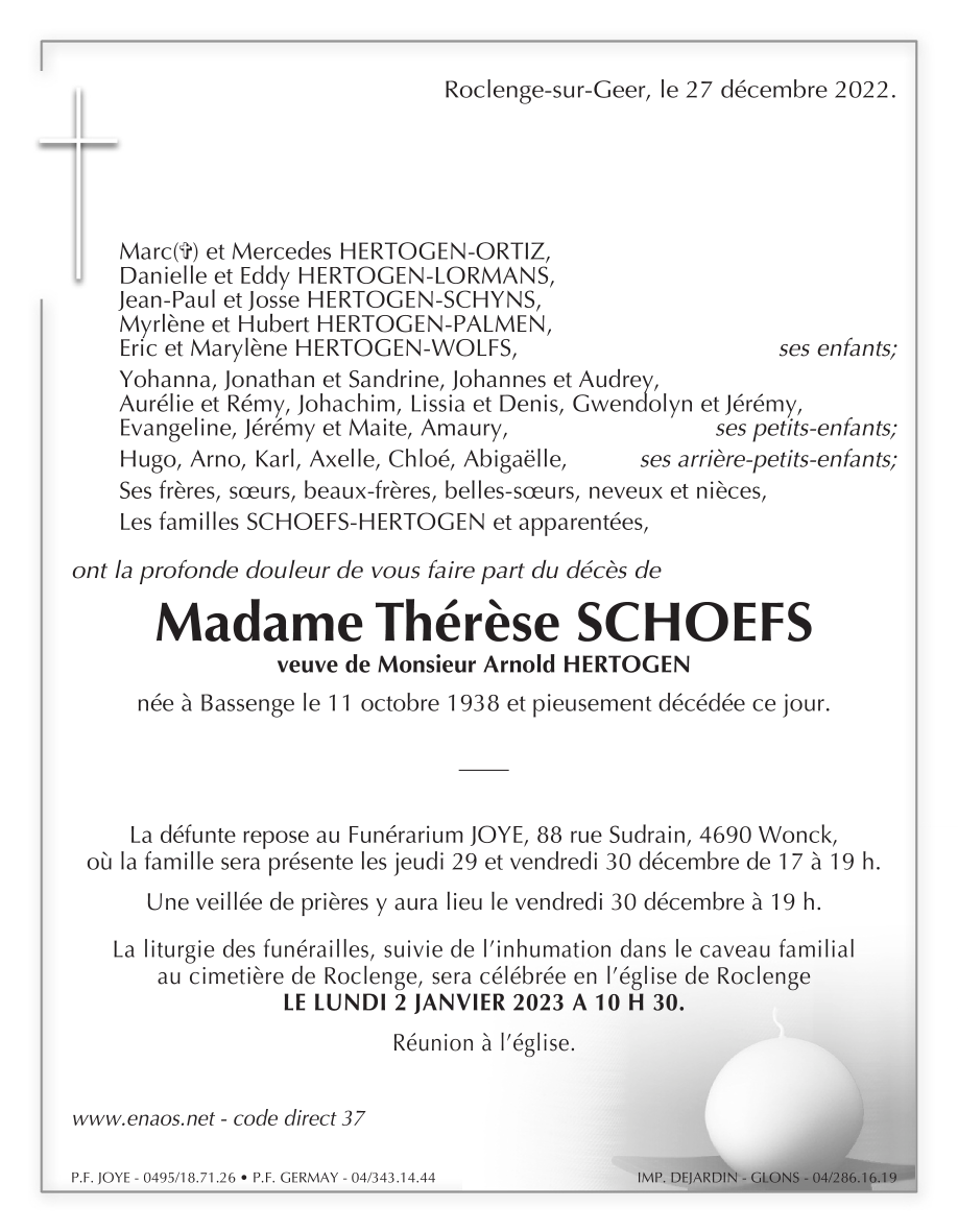 Died in Tongeren (3700) on 27 December 2022 at the age of 84 years