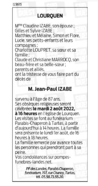 Décédé à Dax (40100, France) le jeudi 28 juillet 2022 à l'âge de 87 ans
