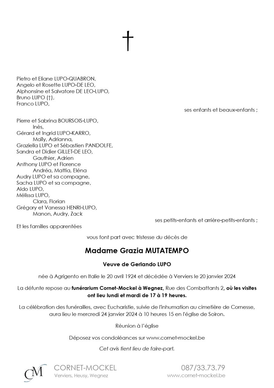 Viuda de Monsieur Gerlando LUPO