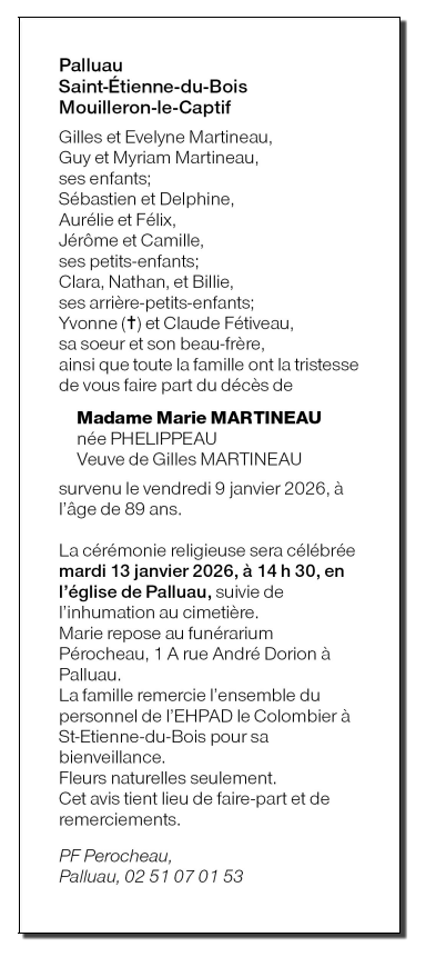 Madame Marie MARTINEAU née PHELIPPEAU
