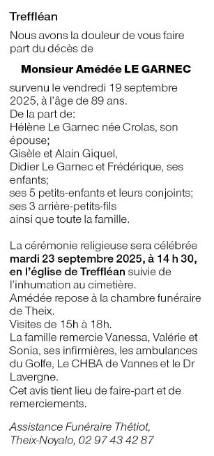 Décédé à Vannes (56000, France) le vendredi 19 septembre 2025 à l'âge de 89 ans