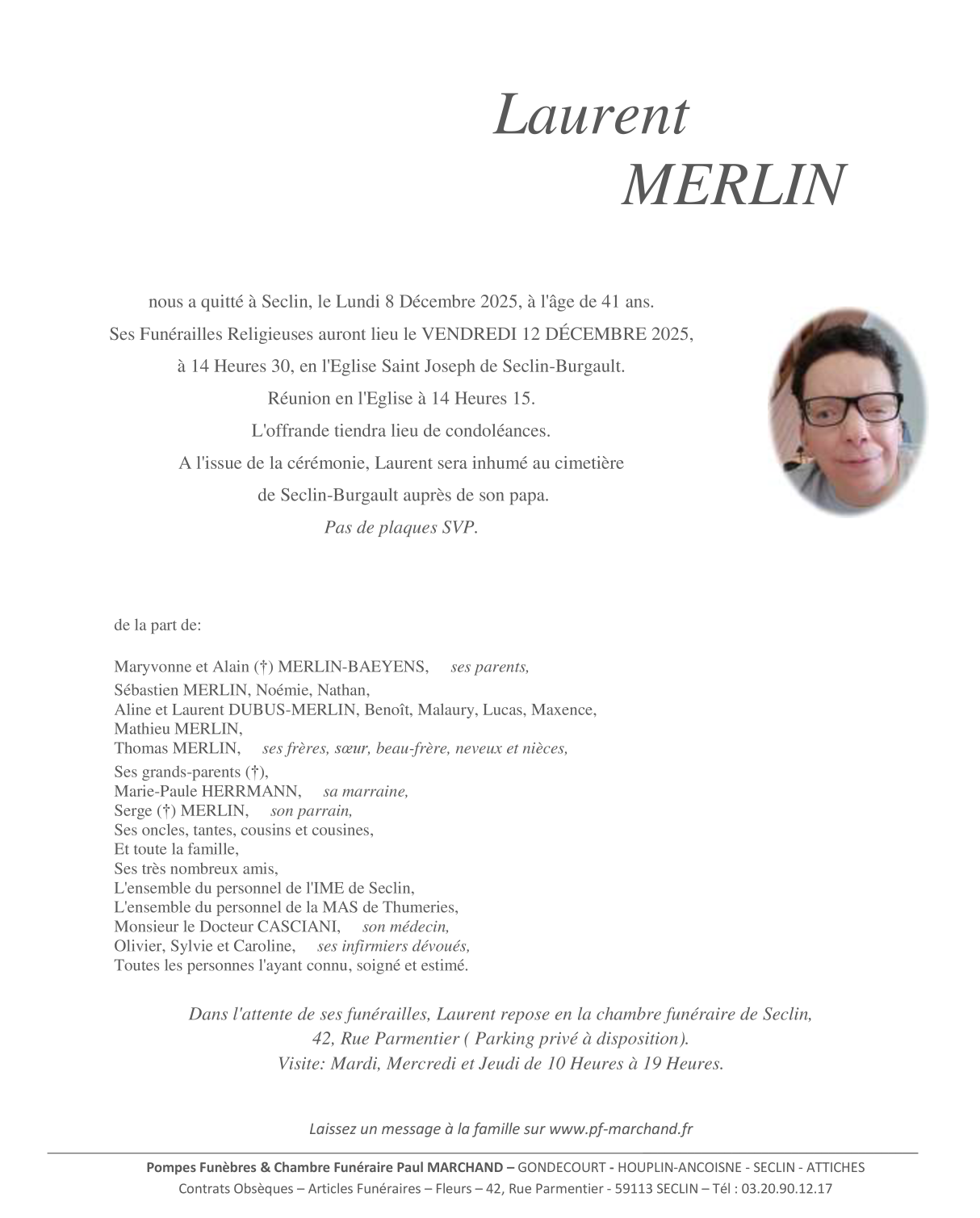 Décédé à Seclin (59113, France) le lundi 8 décembre 2025 à l'âge de 41 ans