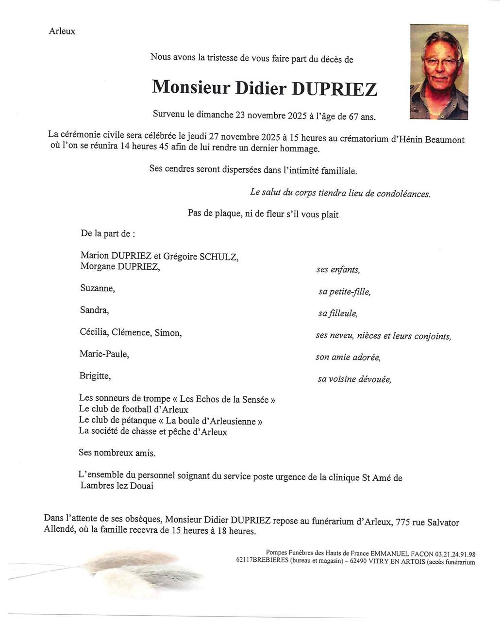 Monsieur Didier DUPRIEZ