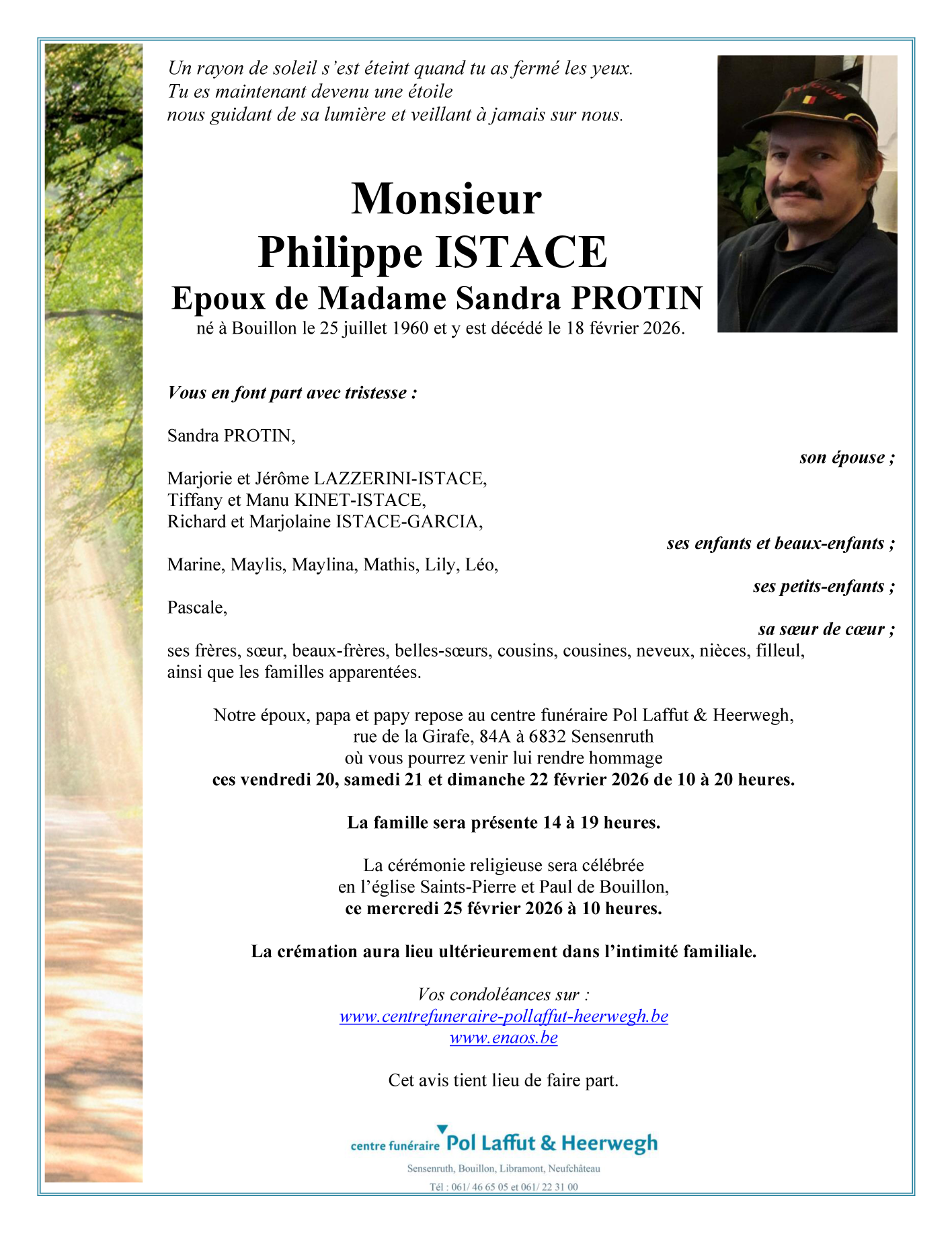 Décédé à Bouillon (6830) le mercredi 18 février 2026 à l'âge de 65 ans