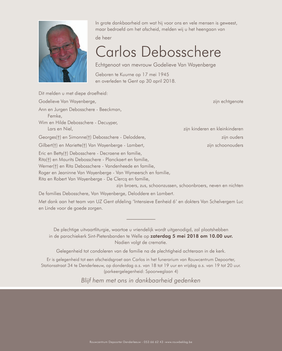 Died in Gent (9000) on 30 April 2018 at the age of 72 years
