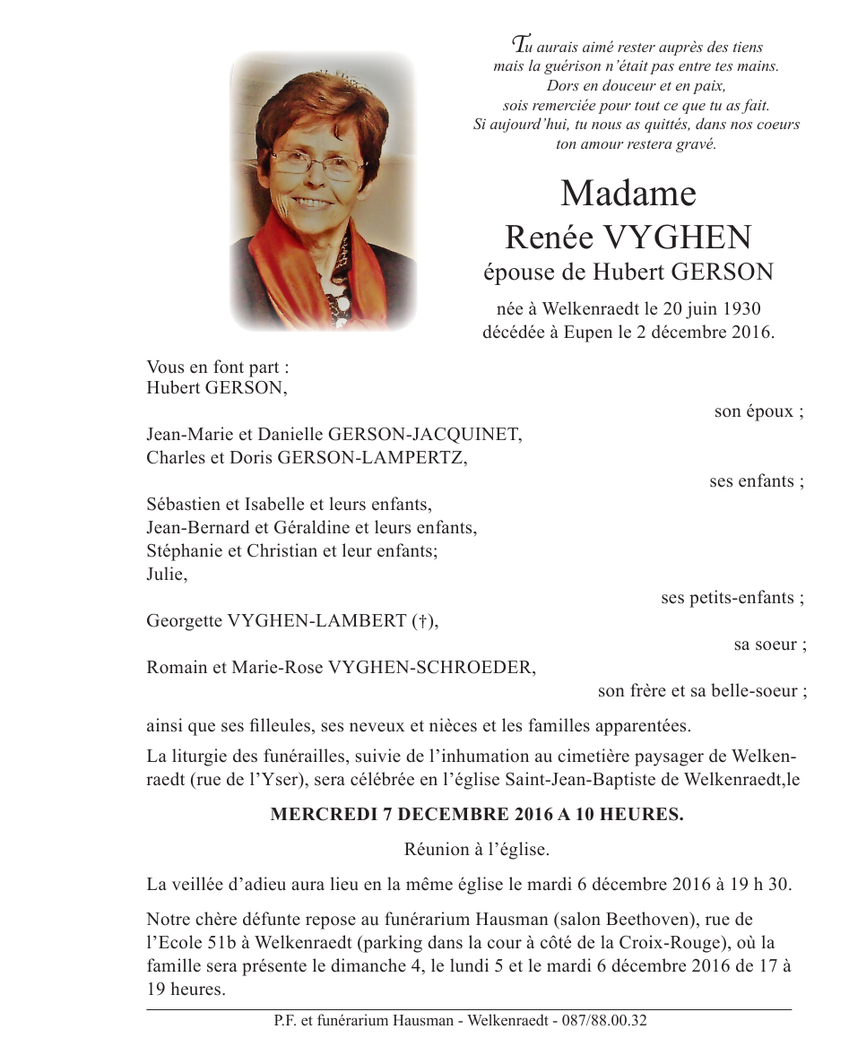 Died in Eupen (4700) on 02 December 2016 at the age of 86 years