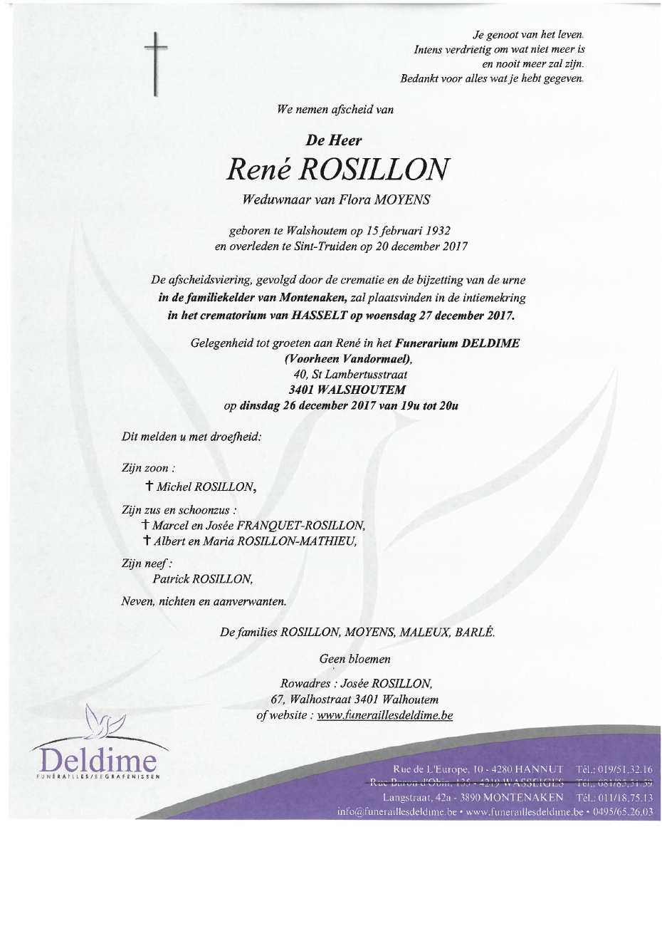 Décédé à Sint-Truiden (3800) le mercredi 20 décembre 2017 à l'âge de 85 ans