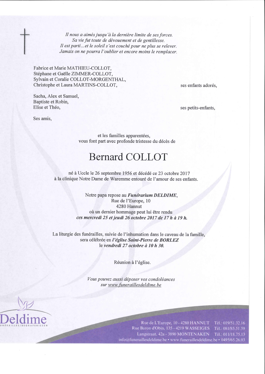 Décédé à Waremme (4300) le lundi 23 octobre 2017 à l'âge de 61 ans