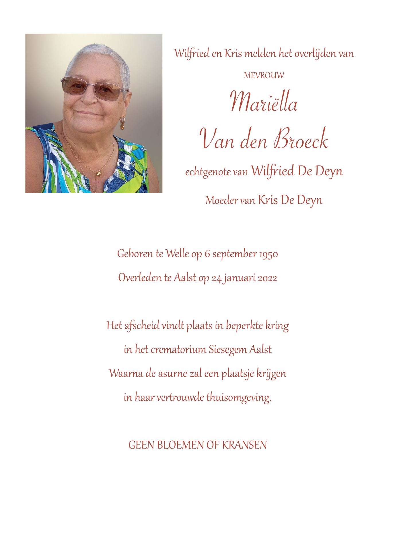 Overleden te Aalst (9300) op maandag 24 januari 2022 op 71-jarige leeftijd