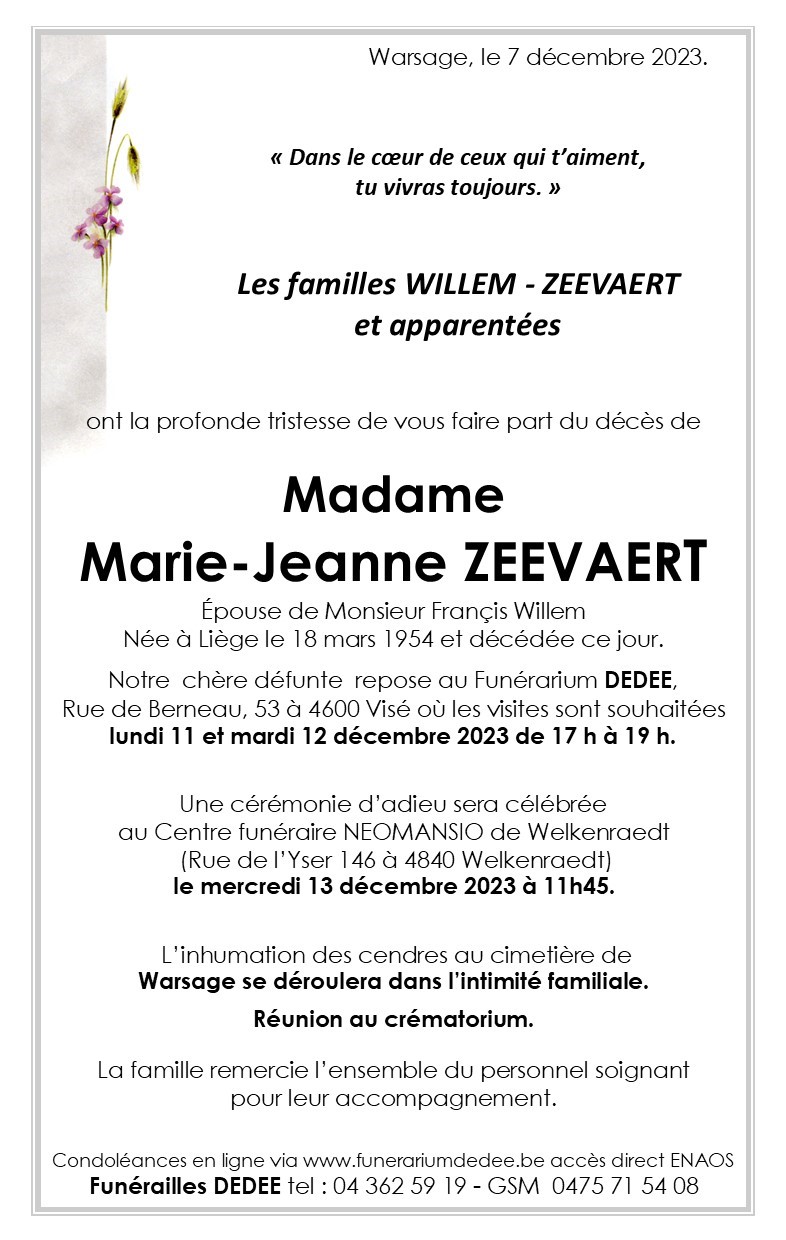 Madame Marie- Jeanne ZEEVAERT
