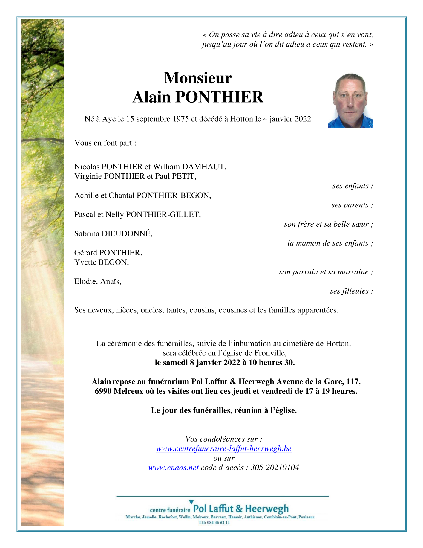 Décédé à Hotton (6990) le mardi 4 janvier 2022 à l'âge de 46 ans