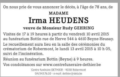 Madame Irma HEUDENS