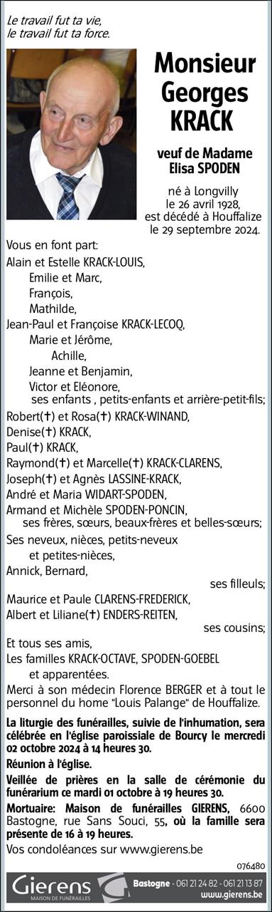 Died in Houffalize (6660) on 29 September 2024 at the age of 96 years