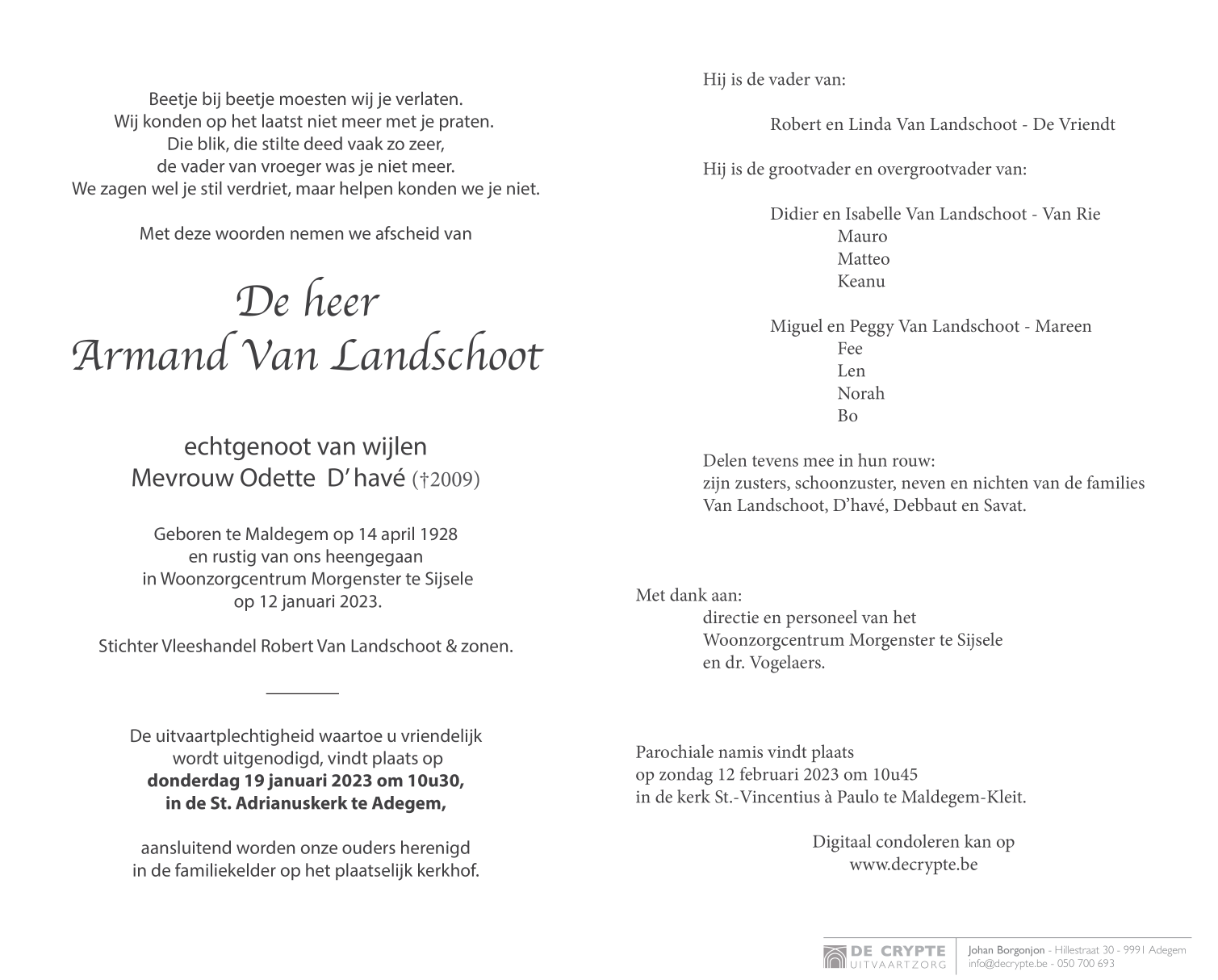Died in Sijsele (8340) on 12 January 2023 at the age of 94 years