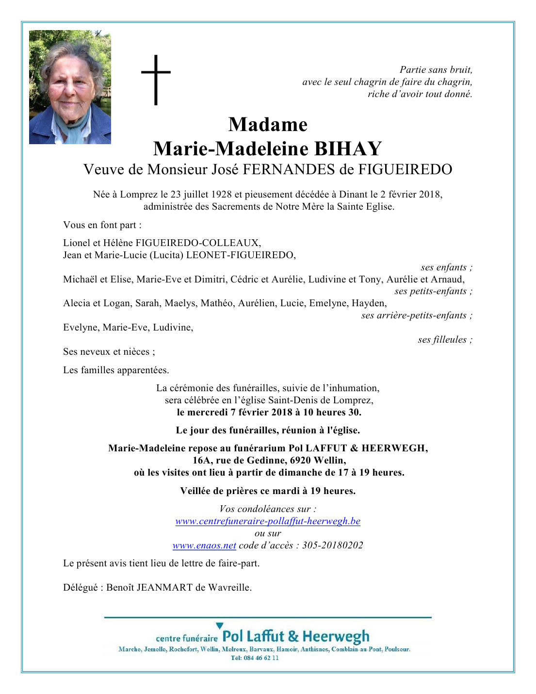 Overleden te Dinant (5500) op vrijdag 2 februari 2018 op 89-jarige leeftijd