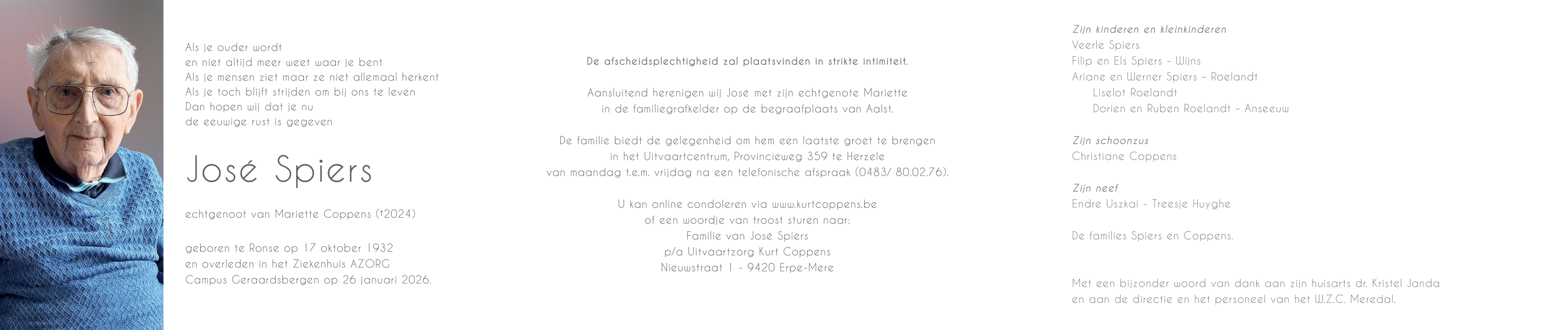 Overleden te Geraardsbergen (9500) op maandag 26 januari 2026 op 93-jarige leeftijd