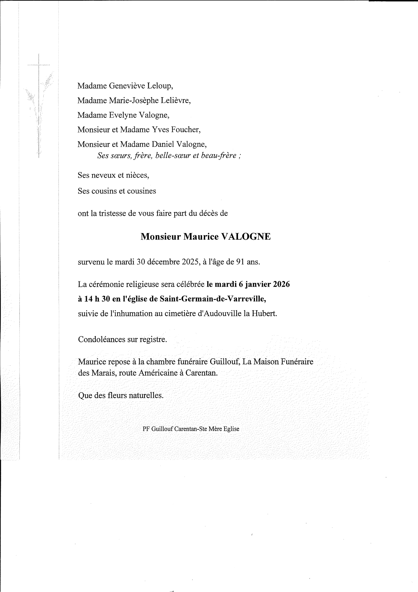 Overleden te Valognes (50700, Frankrijk) op dinsdag 30 december 2025 op 91-jarige leeftijd