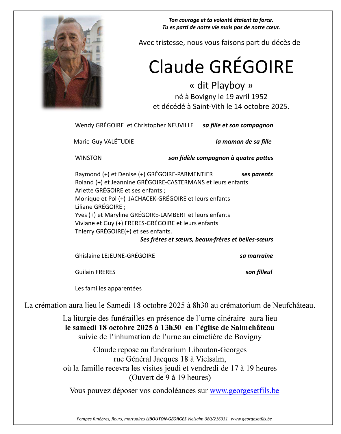 Died in Saint-Vith (4780) on 14 October 2025 at the age of 73 years