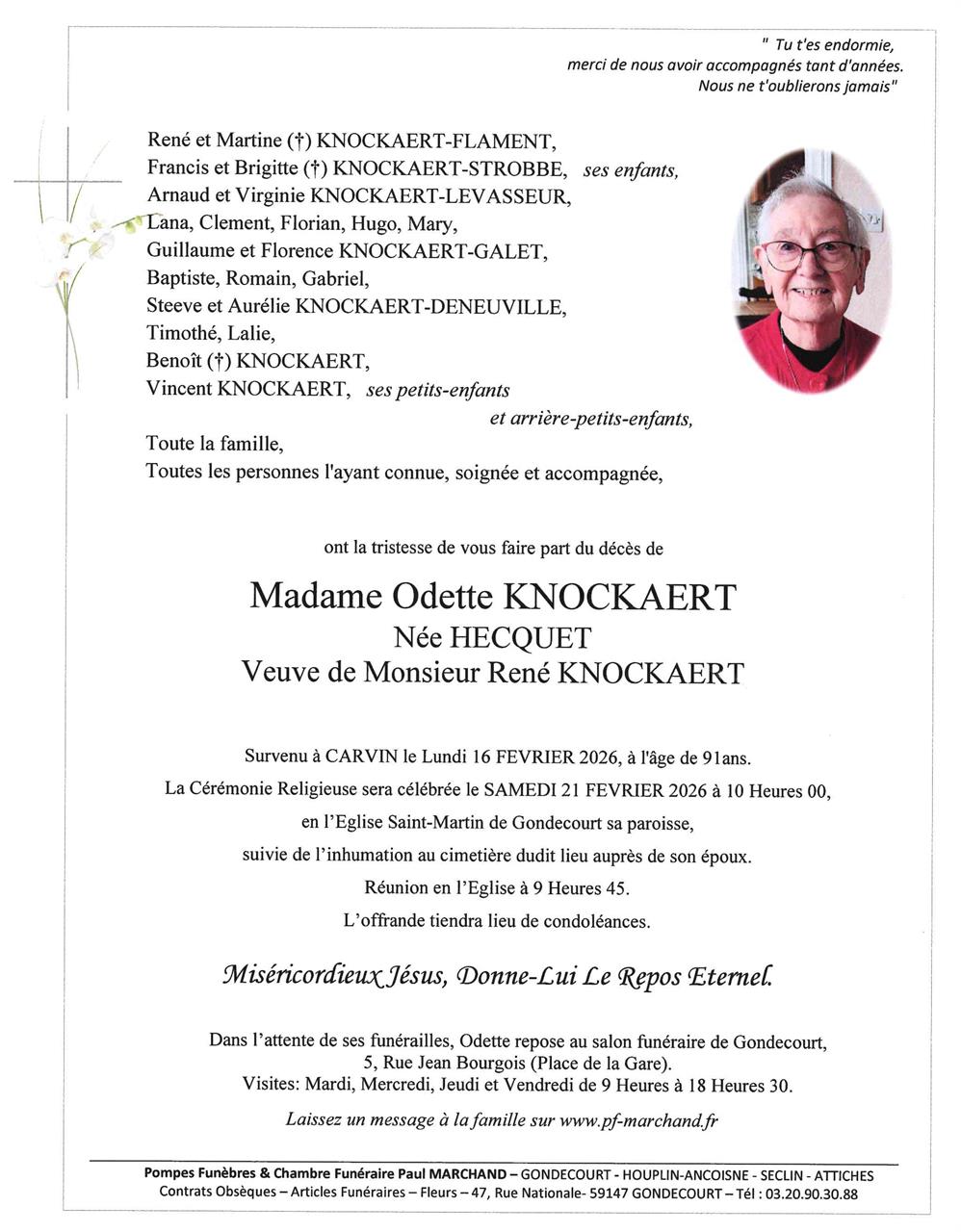 Décédée à Carvin (62220, France) le lundi 16 février 2026 à l'âge de 91 ans