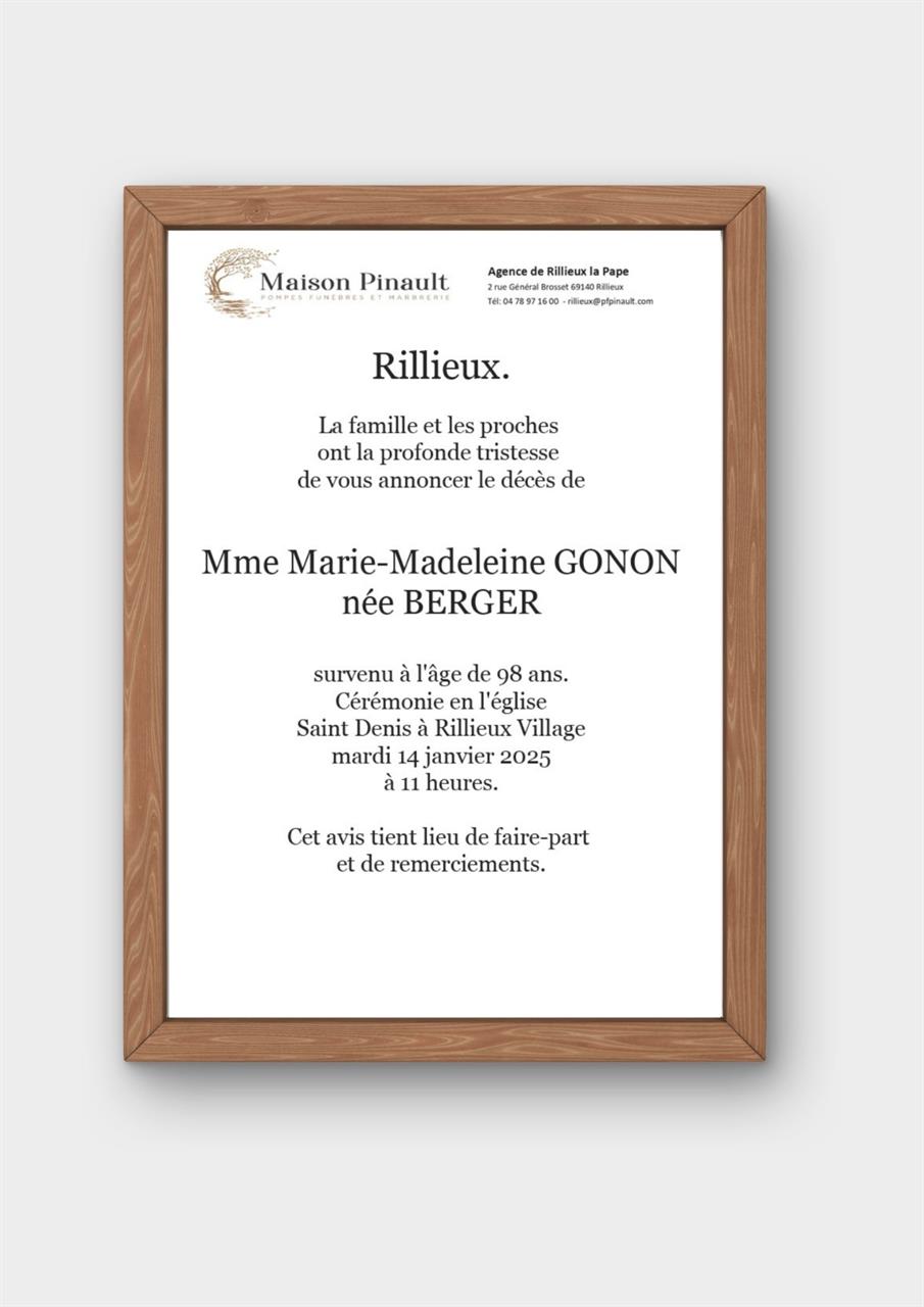 Madame Marie-Madeleine GONON geboren BERGER