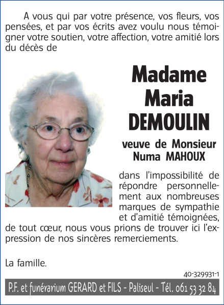 Décédée à Libramont (6800) le mardi 17 décembre 2019 à l'âge de 93 ans