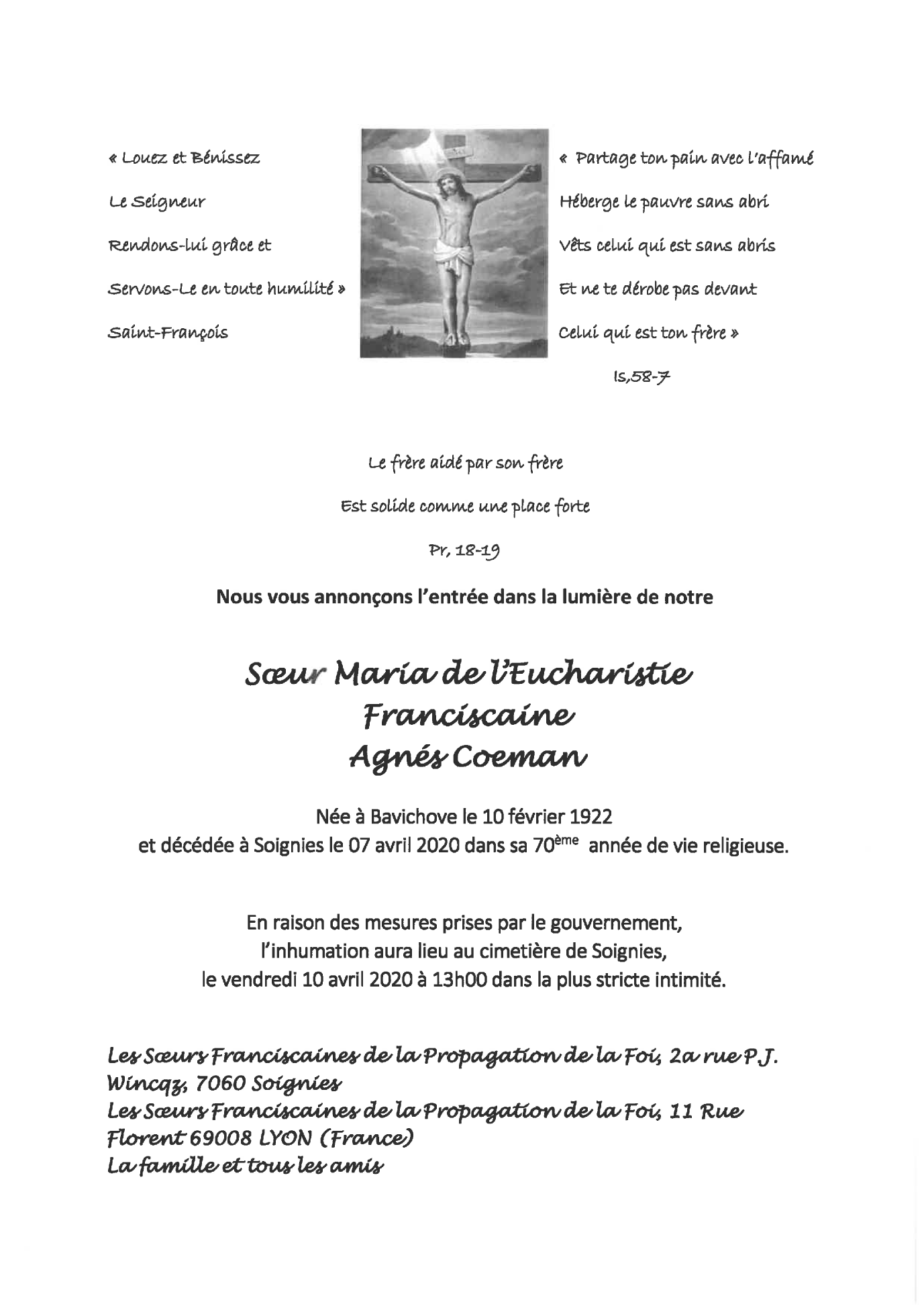 Died in Soignies (7060) on 07 April 2020 at the age of 98 years