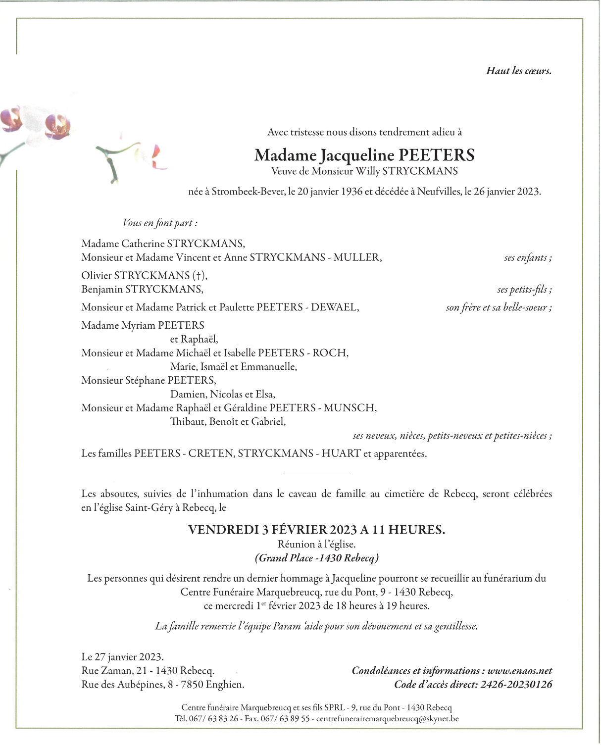 Madame Jacqueline PEETERS