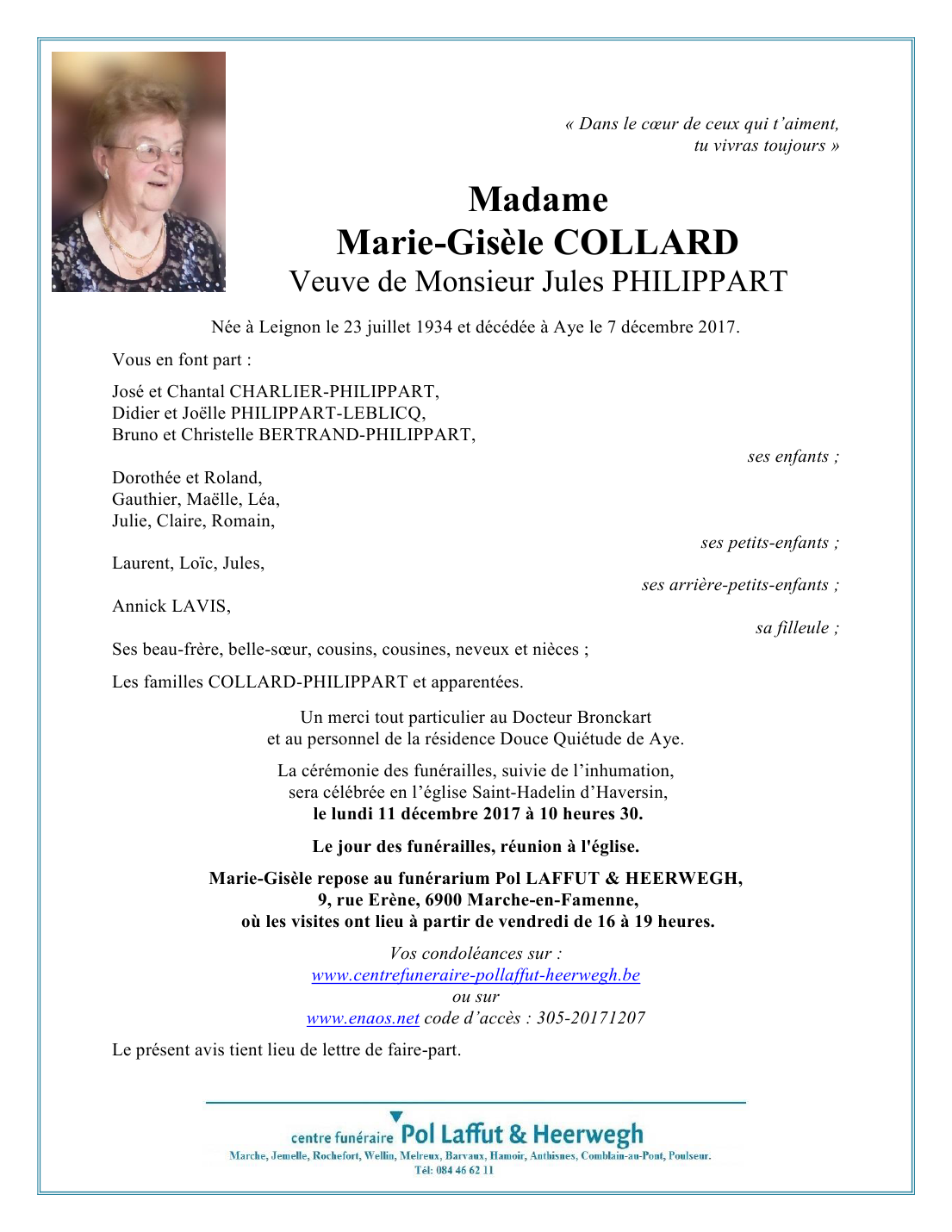 Died in Aye (6900) on 07 December 2017 at the age of 83 years