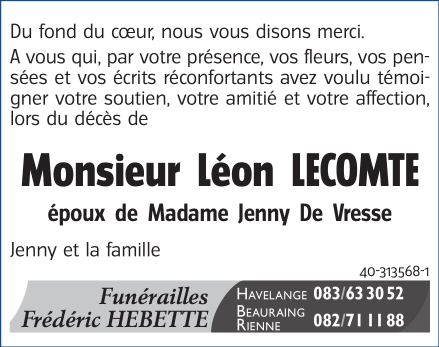 Died in Bouge (5004) on 10 March 2019 at the age of 77 years