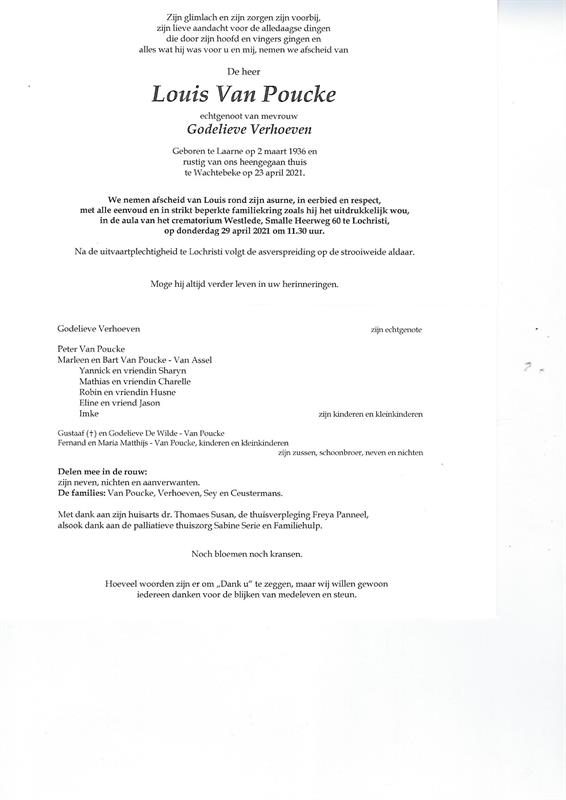 Overleden te Wachtebeke (9185) op vrijdag 23 april 2021 op 85-jarige leeftijd