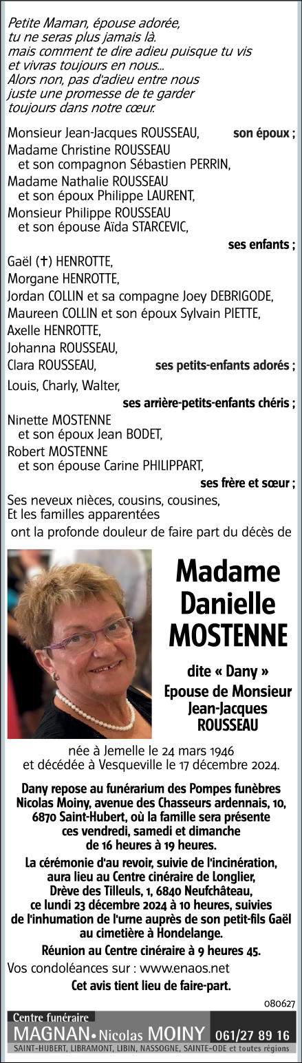 Madame Danielle MOSTENNE