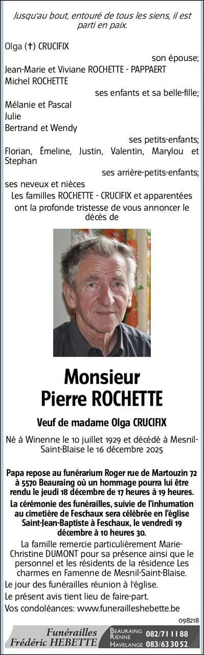 Décédé à Mesnil-Saint-Blaise (5560) le mardi 16 décembre 2025 à l'âge de 96 ans
