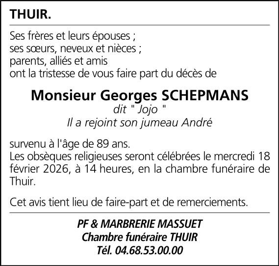 Died in Thuir (66300, France) on 08 February 2026 at the age of 89 years