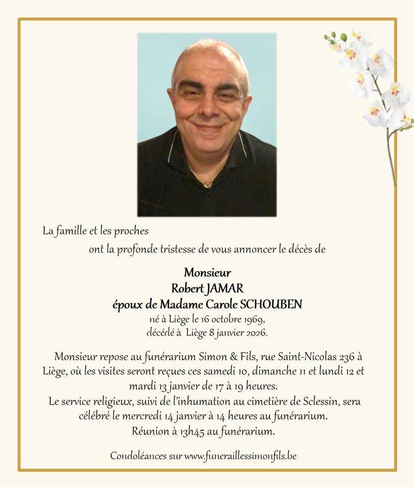 Décédé à Liège (4000) le jeudi 8 janvier 2026 à l'âge de 56 ans