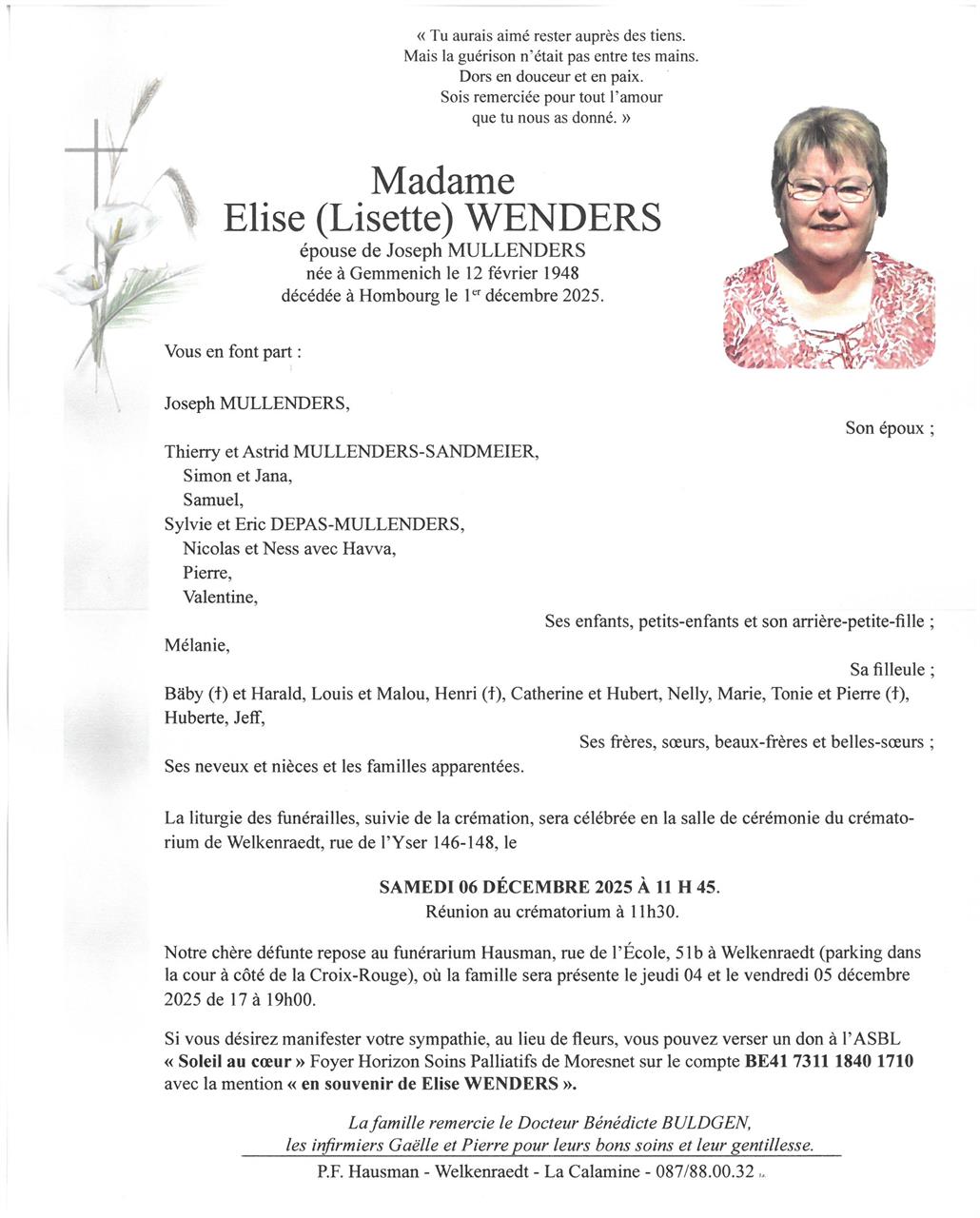 Décédée à Hombourg (4852) le lundi 1 décembre 2025 à l'âge de 77 ans