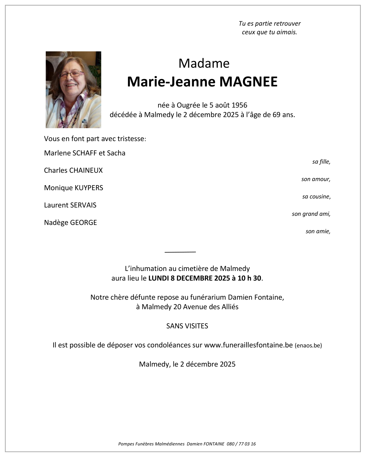 Died in Malmedy (4960) on 02 December 2025 at the age of 69 years
