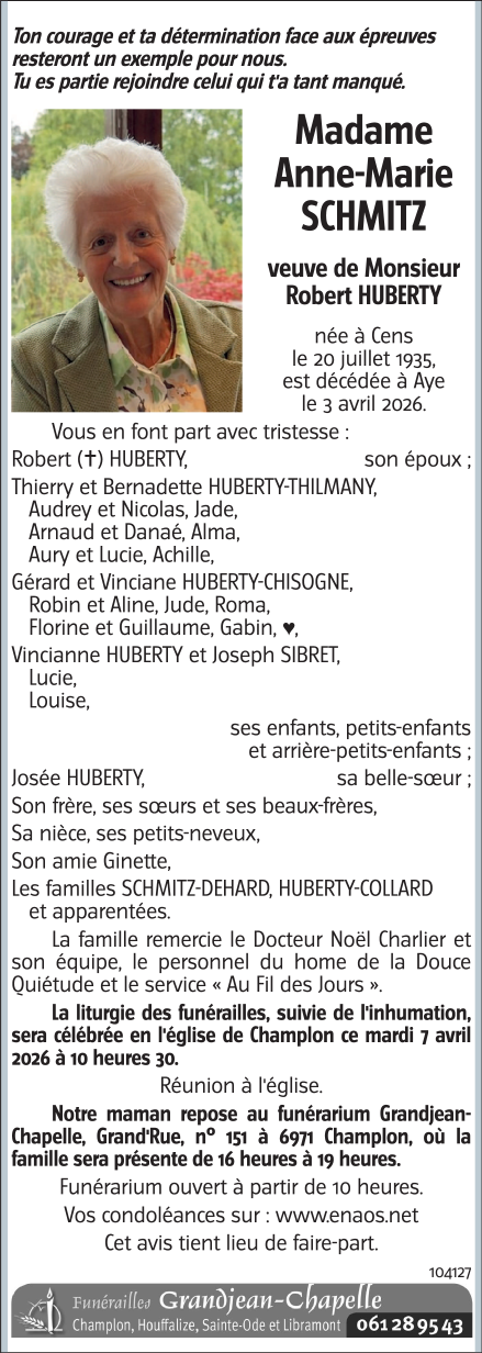 Décédée à Aye (6900) le vendredi 3 avril 2026 à l'âge de 90 ans